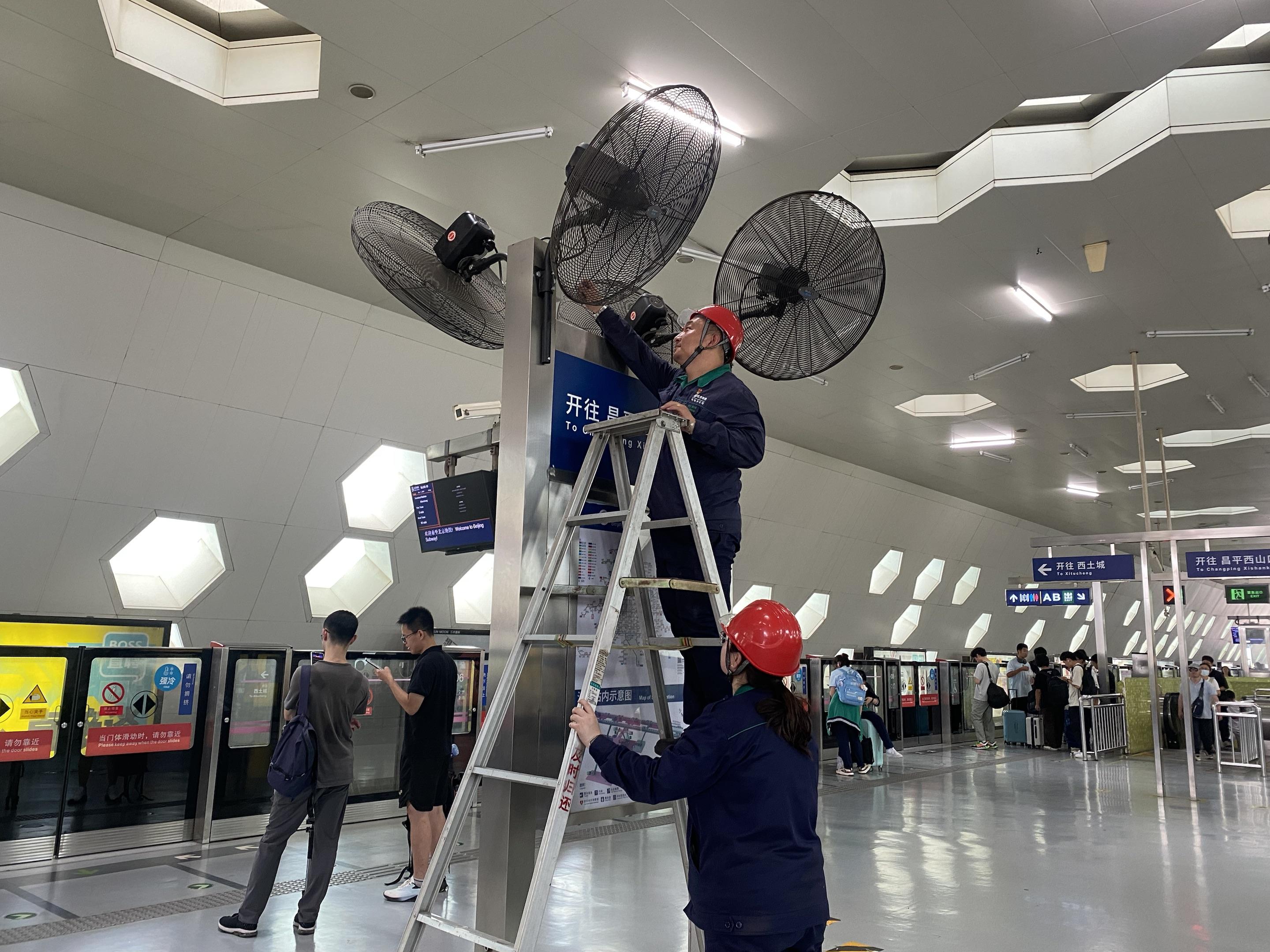 为持续做好“双温车厢”服务工作,北京地铁在所辖1号线号线各车站为有需求的乘客免费提供清凉扇,定期检测56座地面车站1041台风扇、列车空调变频系统及智能控温系统使用状态,为乘客带来清凉体验。按计划清理车站冷水系统、组合式空调箱等处的管道,清洁多联机系统风口过滤网、室外机翅片等部件,进一步强化卫生间卫生保洁,规范保洁管理,提升保洁质量标准,让车站空气清新、让乘客乘车舒心。