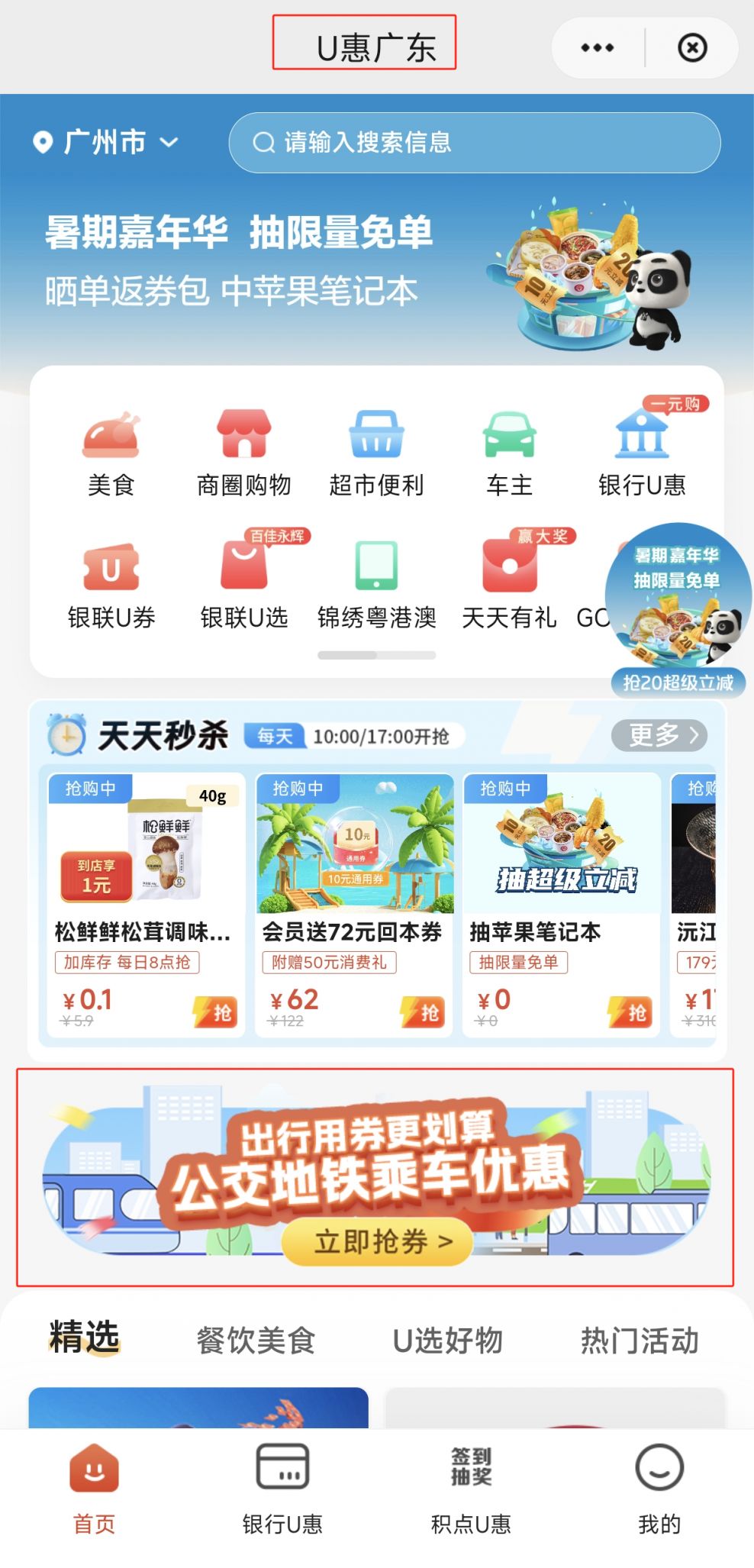 用户可在云闪付APP“U惠广东”专区,以0.3元购买地铁优惠券包:包含7张优惠券,使用云闪付APP广州地铁公共交通码,可享受单笔5折,最高优惠0.99元(需绑定62银联卡),单用户单周可领取1次优惠券包(领取后7天内有效),单用户单日限使用1张优惠券。